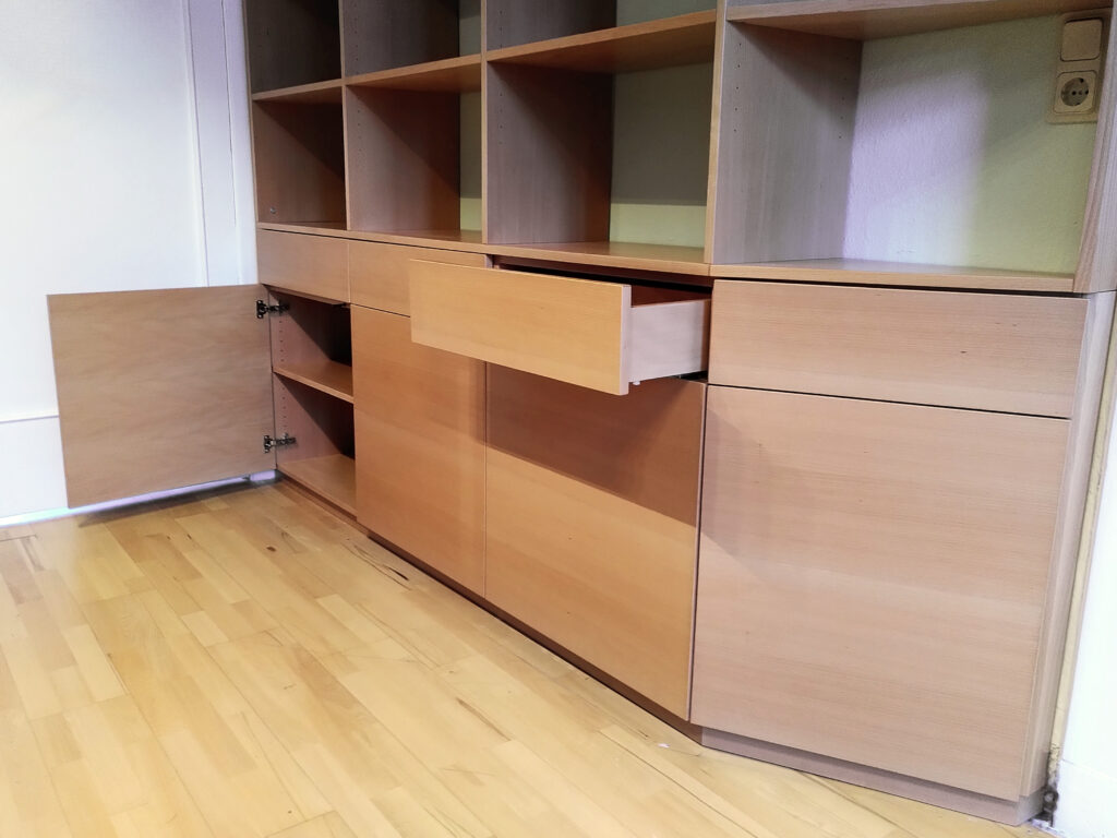 Wandschrank in Buchenfurnier, seidenmatt lackiert, für die Frauenberatungsstelle Wuppertal
