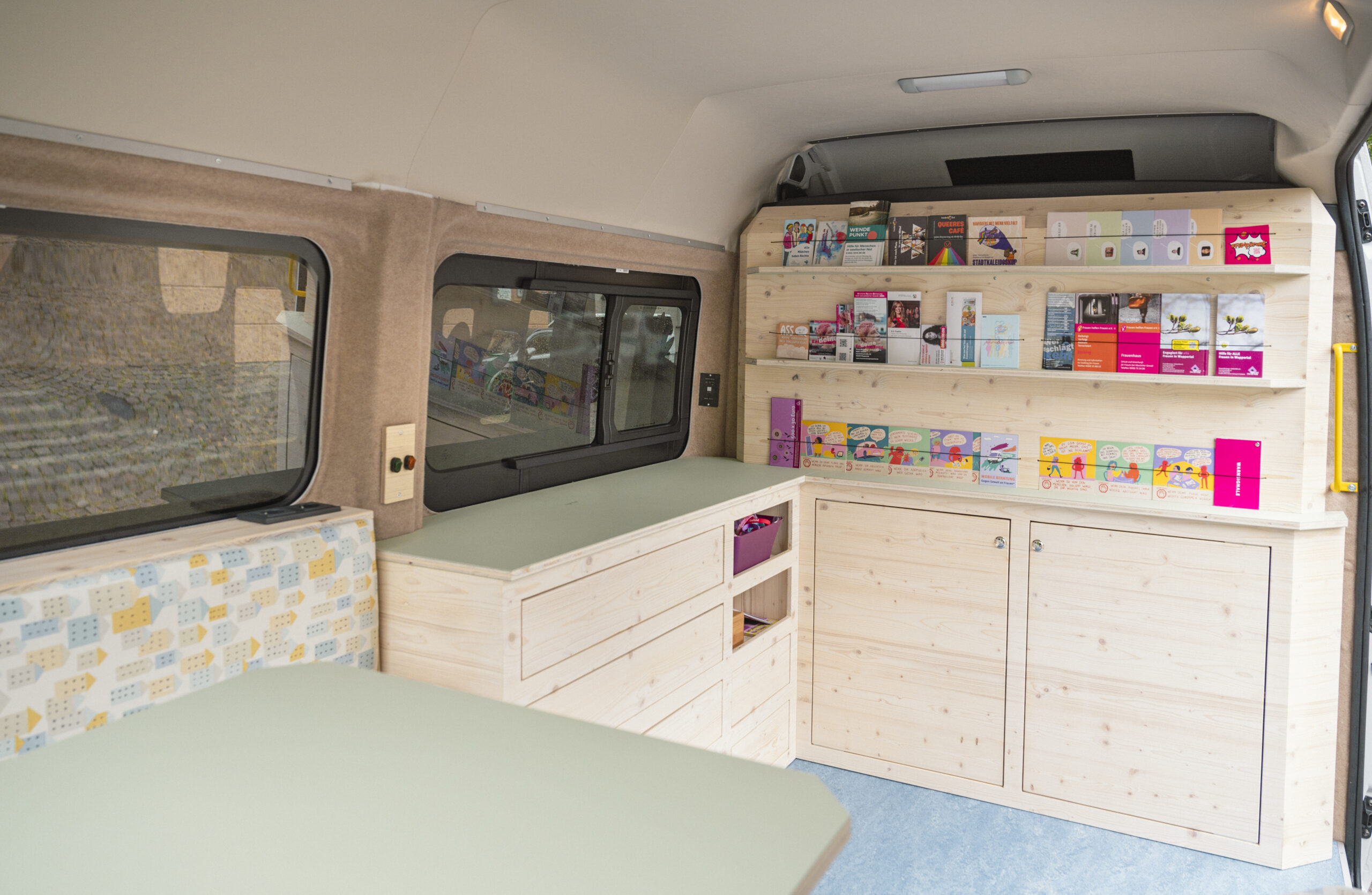 Diesen Beratungsbus habe ich nach den Wünschen der Beraterinnen der Frauenberatungsstelle Wuppertal entworfen und ausgebaut.